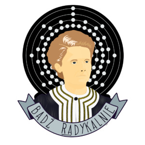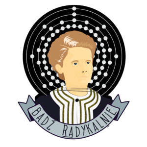 Portrait of Marie Curie with the text “Bądź Radykalnie” below it. That’s Polish for “be radical”.